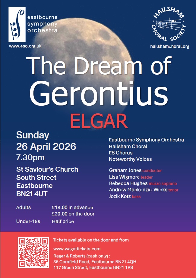 In April we will be performing Elgar’s The Dream of Gerontius with Eastbourne Symphony Orchestra, the ES Chorus, Noteworthy Voices and singers from other choirs. This should be a great evening - The Dream of Gerontius is a profound and deeply spiritual work and possibly Elgar’s greatest composition.